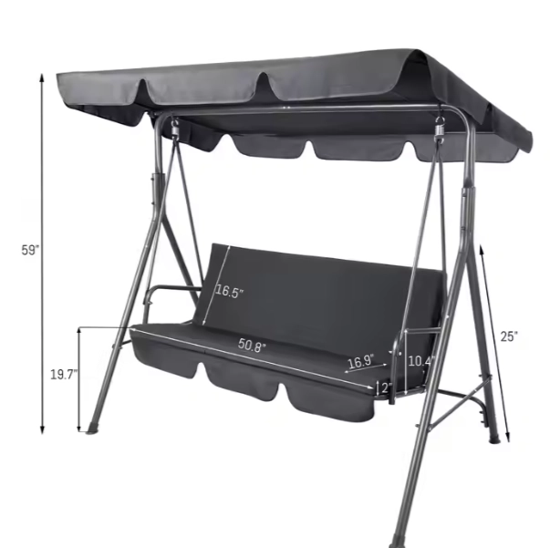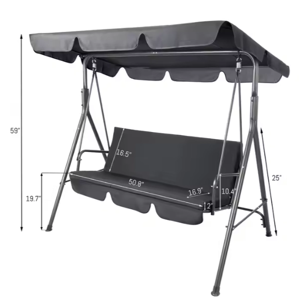 Ocelový rám s práškovým nástřikem zajišťuje dostatečnou stabilitu a odolnost vůči povětrnostním vlivům, což prodlužuje životnost houpací lavice.