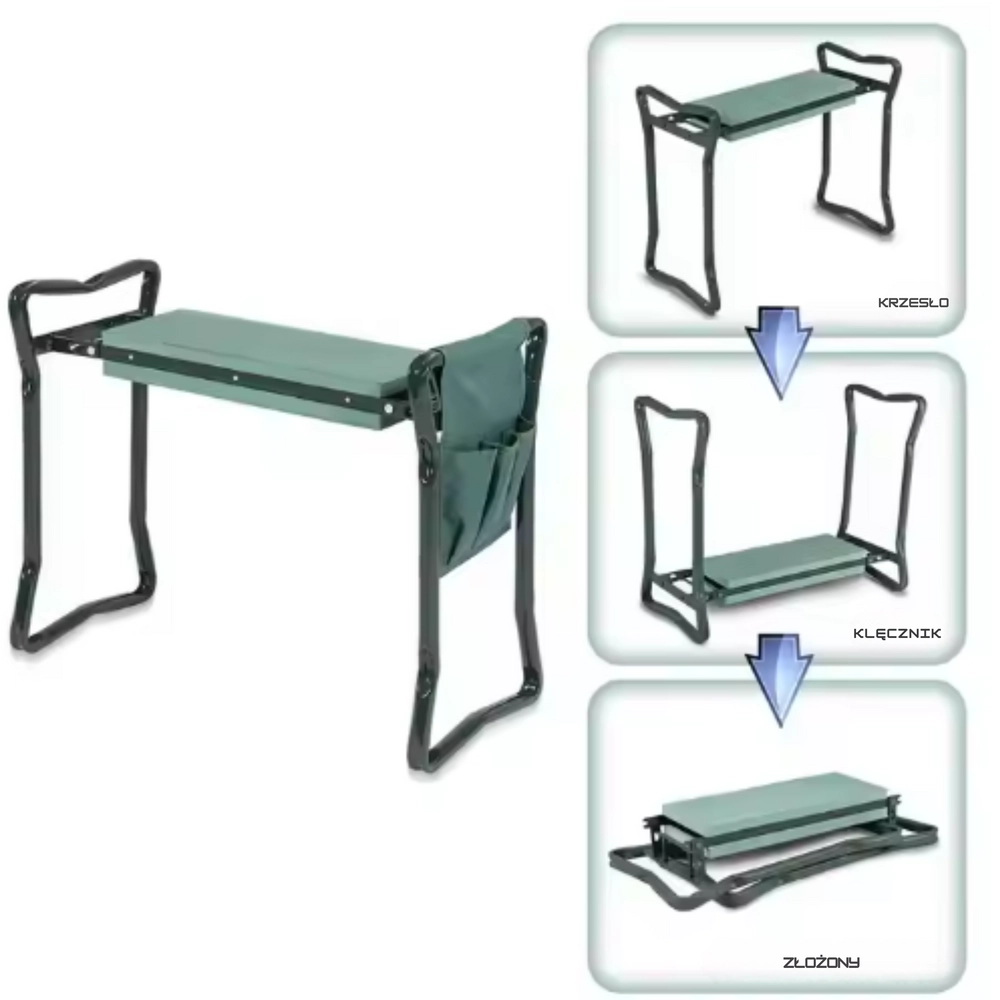 Díky funkci 3v1 můžete klekátko použít jako stolička na sázení, klekátko na pletí nebo sedátko k odpočinku. Měkká pěnová podložka z EVA je perfektní pro pohodlí vašich kolen. Skládací konstrukce umožňuje snadný transport a skladování.