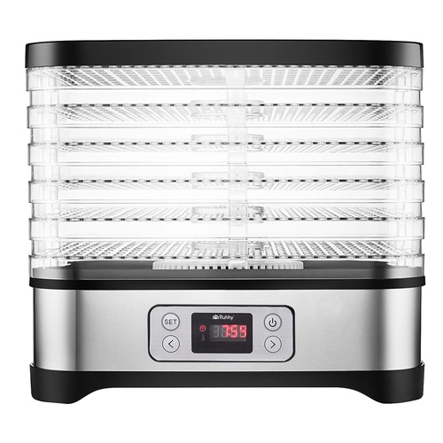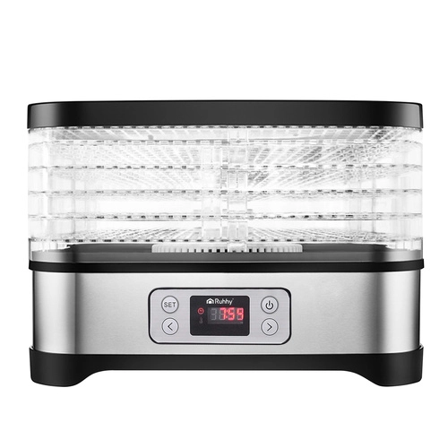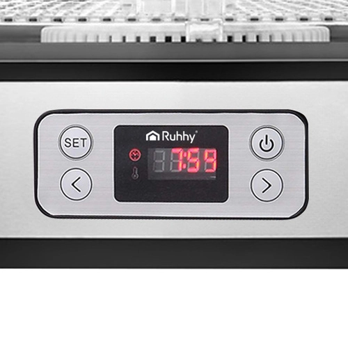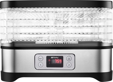 Univerzální sušička Ruhhy o výkonu 400 W umožňuje snadné sušení hub, ovoce, zeleniny a bylin. Je vybavena 5 tácy s celkovou kapacitou 10 litrů, nastavitelnou teplotou (35–70°C) a čitelným displejem s časovačem až na 24 hodin. Ideální volba pro domácí skladování během celého roku.