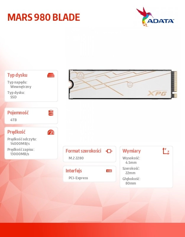 SSD Disk XPG Mars Blade je první SSD disk PCIe 5.0 určený pro notebooky. S bleskovou rychlostí čtení/zápisu až 14 000/13 000 MB/s a kapacitou až 4TB poskytuje stabilní výkon pro nejvíce náročné úkoly.