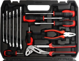 Užijte si spolehlivost a pohodlí s touto všestrannou sadou nářadí BauerKraft, ideální pro domácí kutily i profesionály. Obsahuje vše potřebné pro opravy a montáže - od nábytku až po drobné elektroinstalace. Design s přesně tvarovanými přihrádkami udržuje všechno nářadí na svém místě a usnadňuje organizaci.