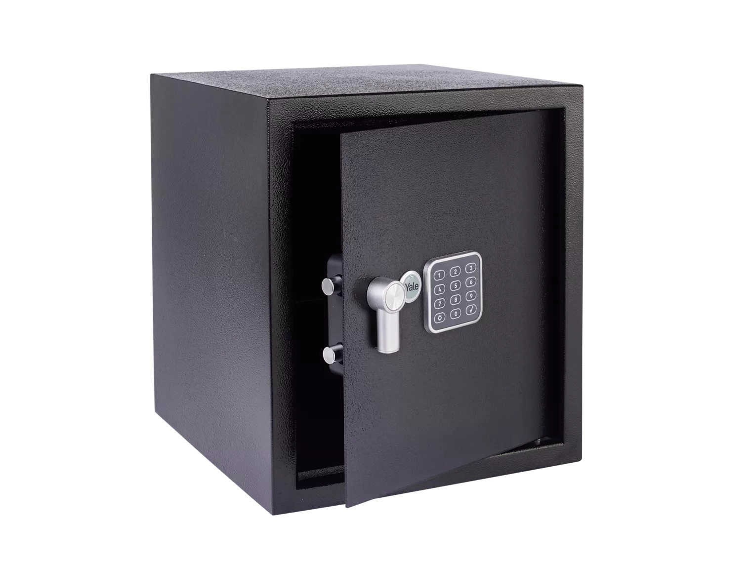 Sejf je vyroben z odolné oceli a je dodáván s připravenými montážními otvory a kotvami pro snadnou instalaci. Užijte si klid díky časované blokaci, která se aktivuje po třech neúspěšných pokusech o zadání kódu. Uvnitř naleznete praktickou vnitřní poličku a užitečný indikátor nízké úrovně baterie. V případě potřeby máte k dispozici 2 kusy mechanického klíče pro nouzové otevření.