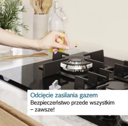 Bezpečnost vaření je prioritou. Deska je vybavena funkcí, která automaticky odstaví plyn při zhašení plamene, čímž zajišťuje váš klid a bezpečnost během vaření.