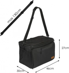 Technické parametry tašky zahrnují rozměry 46 × 27 × 30 cm a její černou barvu. Vnější povrch tvoří oxfordská tkanina, zatímco vnitřní pokrytí je z hliníkové fólie kombinované s oxfordskou tkaninou.