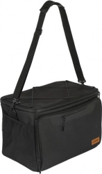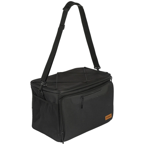 Pro nošení je vybavena pohodlným, nastavitelným ramenním popruhem s ochrannou podložkou, což zajišťuje pohodlí i při vyšším zatížení. Taška je také voděodolná, což znamená, že ji můžete bez obav položit na mokrou trávu nebo písek.