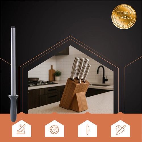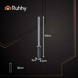 Diamantový brusný ocílka RUHHY je neocenitelným pomocníkem pro pravidelné ostření nožů, který udrží vaše nástroje v dokonalé kondici. Ergonomická rukojeť a ocelová tyč zajišťují pohodlné a odolné použití, což jej činí ideálním pro profesionální i domácí kuchyni.