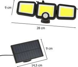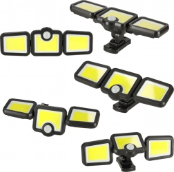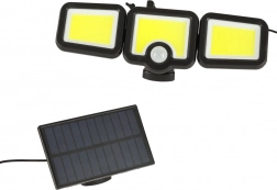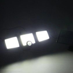 Výkonný venkovní solární LED reflektor s třemi nastavitelnými panely, samostatným solárním panelem a integrovaným PIR senzorem. Poskytuje široký úhel svícení až 320°, automatické rozsvícení po setmění a úsporný provoz na solární energii. Ideální pro osvětlení dvora, zahrady, vchodu či příjezdové cesty a pro zvýšení bezpečnosti po setmění.