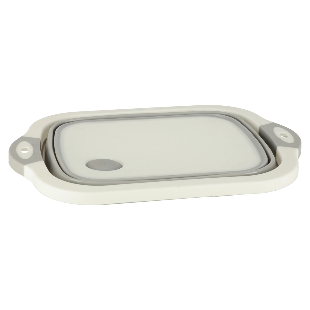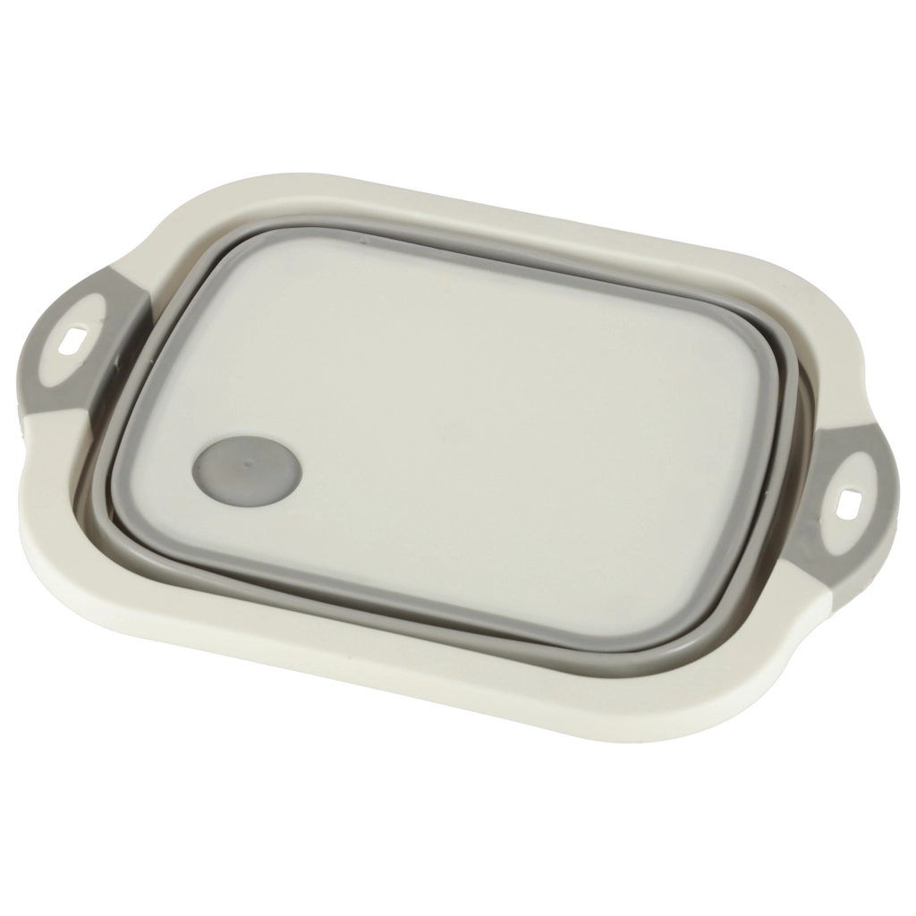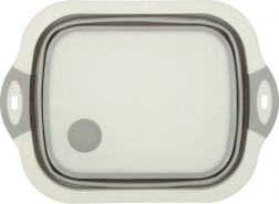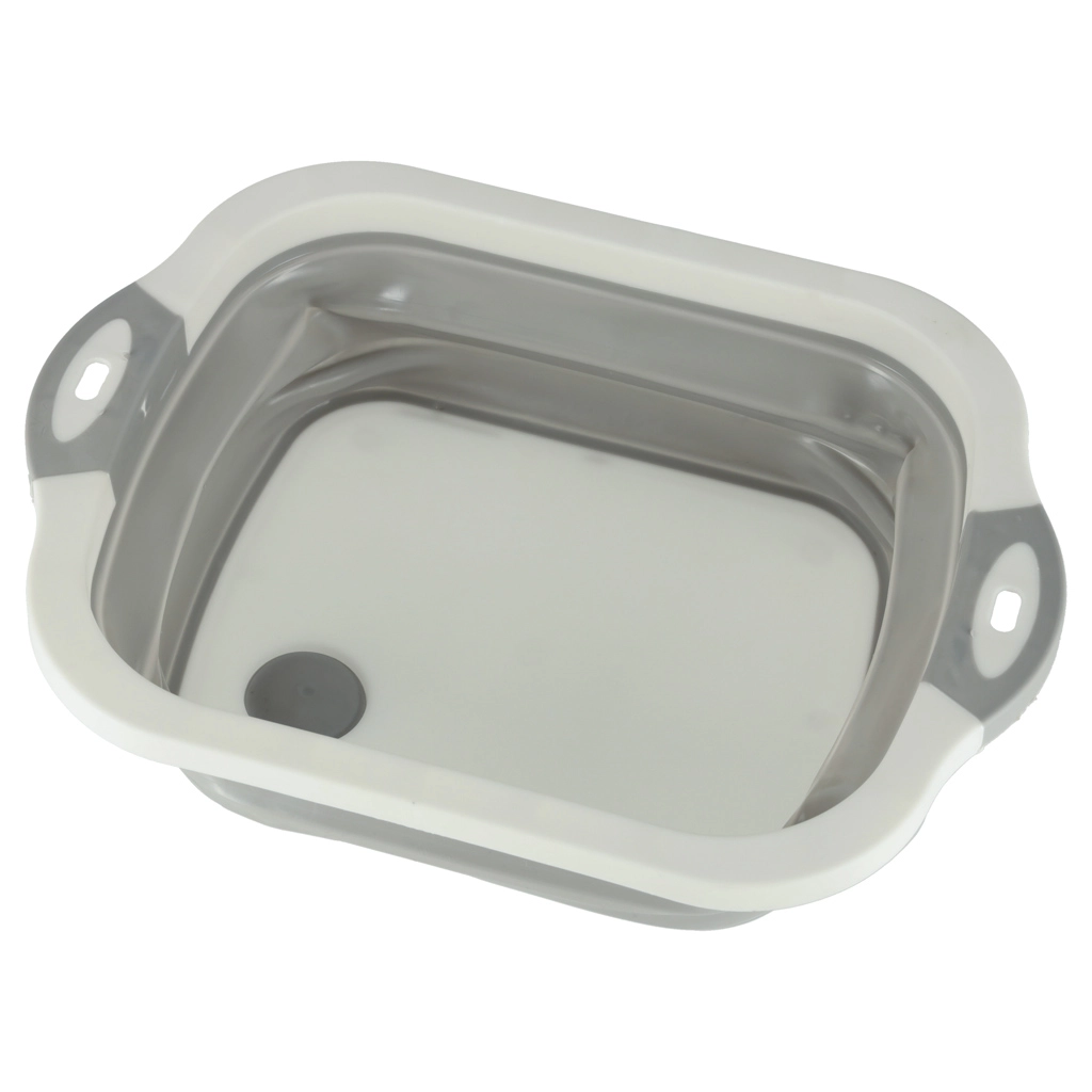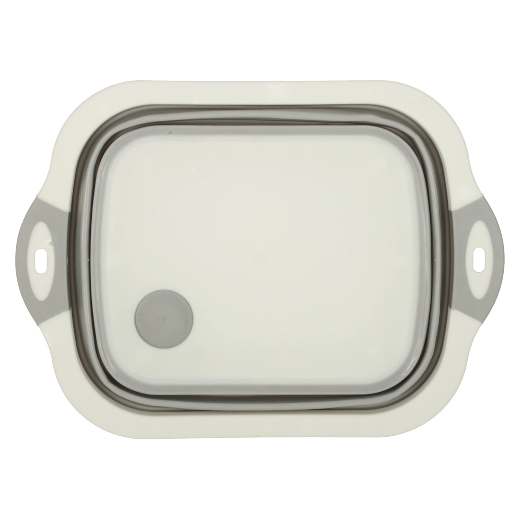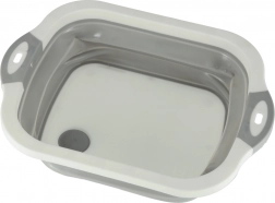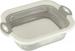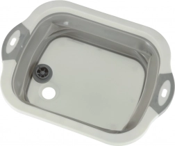 Skládací silikonová miska s odtokem o objemu 5,5 l je ideální kempingový pomocník, který šetří prostor v tvém kamperu. Po složení je minimální a praktická pro skladování v batohu či skříni.