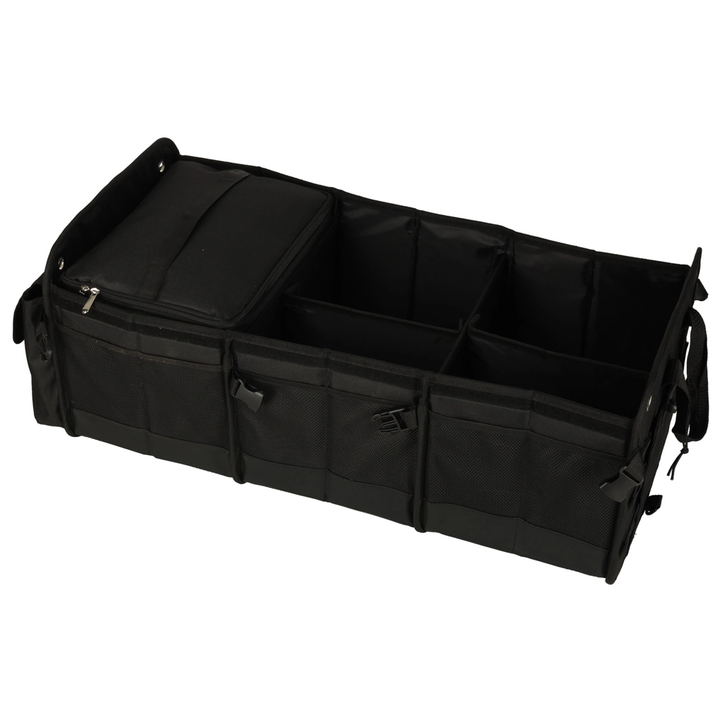 Udržte pořádek v autě s praktickým organizérem do kufru s vyjímatelnou termo taškou. Nabízí velký objem až 100 l, voděodolný materiál, nastavitelné přepážky a uzavíratelné víko pro bezpečné a přehledné uložení nákupu, nářadí i cestovních doplňků.