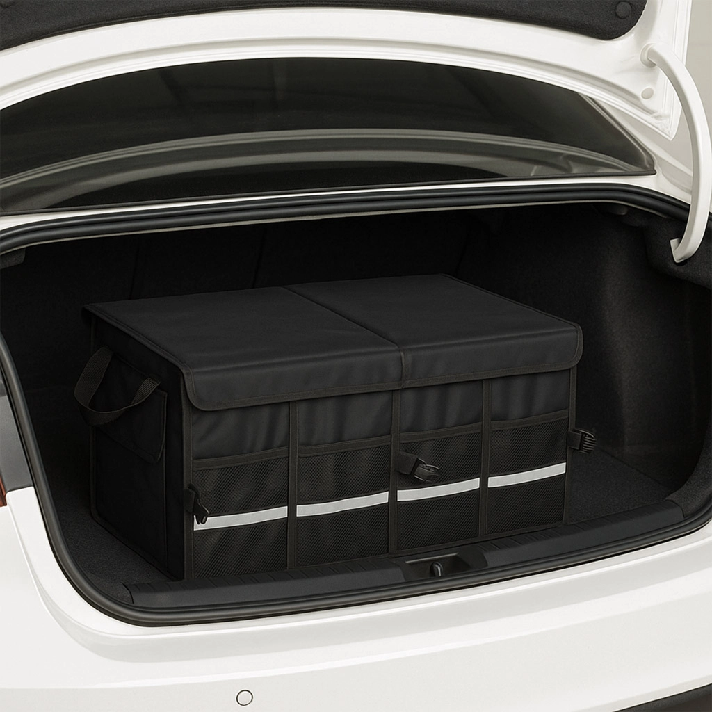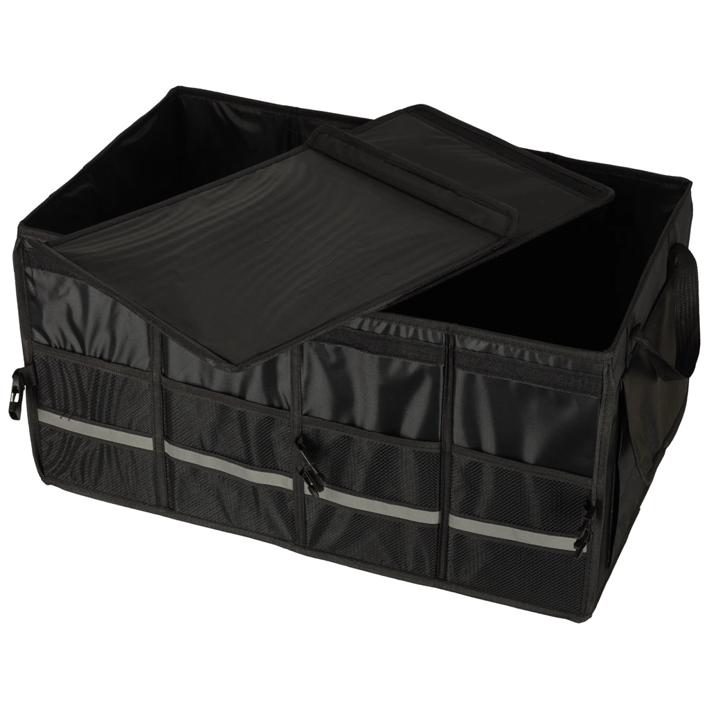 Udržujte svůj kufr auta přehledný a organizovaný s tímto robustním organizérem. Vyrobeno z odolné polyesterové tkaniny oxford, odolné proti roztržení. Černá barva zajistí univerzálnost používání ve všech typech vozidel.