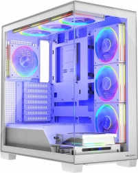 Počítačová skříň Stellar 8F ARGB je navržena pro ty, kteří chtějí mít vizuální přehled o svých komponentách, s předním a bočním panelem z tvrzeného skla. Jednoduše se otevírá díky pantového upevnění boků, což usnadňuje montáž a údržbu hardware.