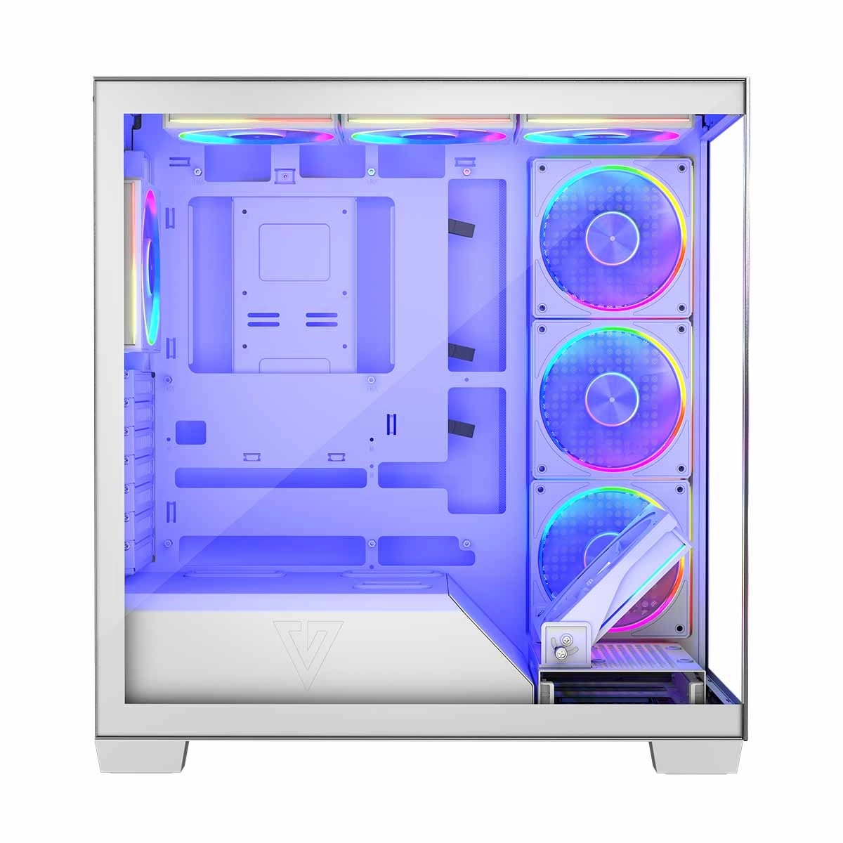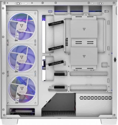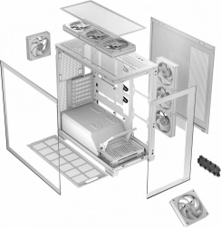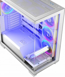Důležitým prvkem je efektivní chladicí systém, který zajišťují tři ARGB ventilátory na boku skříně, další tři na vrchu a dva na zadní straně. K dispozici je také speciální rám pro ventilátor pro přímé chlazení grafické karty.