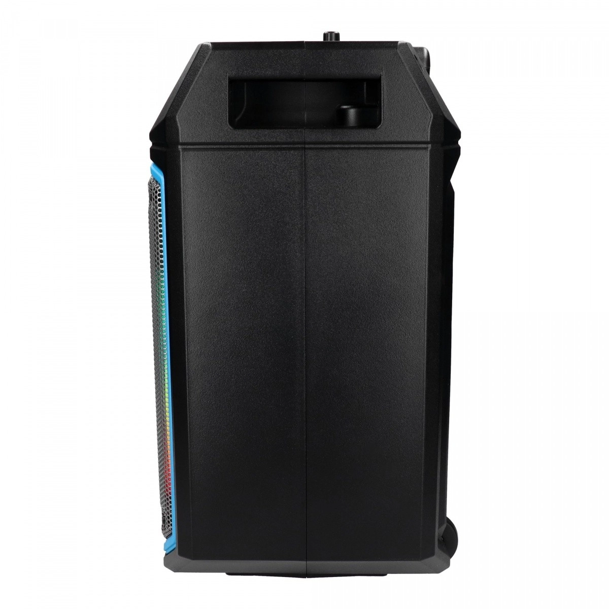 Pohodlí zajišťují dálkové ovládání a teleskopické rukojeti s kolečky pro snadný pohyb. Vestavěný mikrofon pro karaoke a vícebarevný LED panel dodají vaší party správnou atmosféru.