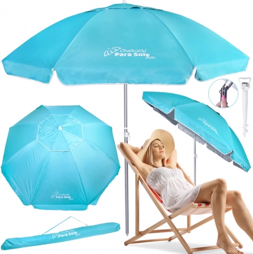 Stylový a funkční plážový a zahradní slunečník CHALKIDIKI Para Sole Sun s průměrem 240 cm poskytuje špičkovou ochranu UPF 50+, voděodolné krytí a naklápěcí mechaniku pro stín přesně tam, kde ho potřebujete. Odvětrávaná 8-dílná konstrukce zajišťuje stabilitu i při větru a díky rychlému skládání, kotvě do země a praktickému obalu s popruhem je ideální na pláž, zahradu i piknik.
