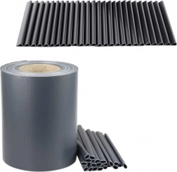 Grafitová plotová páska s šířkou 19 cm a délkou 35 metrů je ideální pro ochranu panelového plotu. Je vyrobena z vysoce kvalitního PVC zpevněného polyesterovou sítí, která odolává roztržení, UV záření a vodě. Páska zahrnuje atest PZH a certifikát TÜV SÜD, zajišťující bezpečnost a splnění norem.