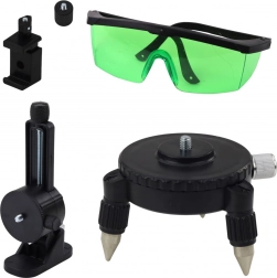 Součástí je mnoho montážních doplňků, držáků, 2x akumulátor, dálkový ovladač, zdvihací platforma a pevný přepravní kufr s ochrannou pěnou. Ideální pro práci s keramikou, montáž nábytku, stanovení úrovní schodů, stropních konstrukcí a nástěnných dekorací.