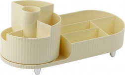 Otočný organizér je vybaven mechanismem otočným o 360°, který zajišťuje rychlý a snadný přístup k obsahu. Ideálně se hodí jako kontejner na štětce na líčení, rtěnky, korektory, flakony parfémů, ale také jako organizér na tužky, nůžky, fixy, zvýrazňovače, spony či jiné drobné kancelářské doplňky.