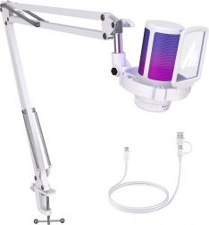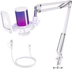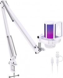 Mikrofon Maono je vybaven robustním nastavitelným ramenem, které umožňuje pohodlné umístění na stole. Připojení přes USB zajišťuje jeho kompatibilitu se systémy Windows, macOS a konzolemi PlayStation 4 a 5, přičemž jednoduché ovládání a moderní design obohacený o RGB podsvícení přidává na atraktivitě. Produkt také nabízí funkci rychlého ztlumení, což je ideální pro okamžité zamezení nežádoucím zvukům během nahrávání. Aktuální příslušenství zahrnuje pop filtr a flexibilní rameno, které napomáhá vytvořit profesionální nahrávací prostředí.