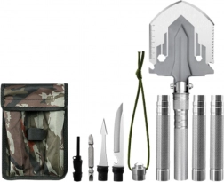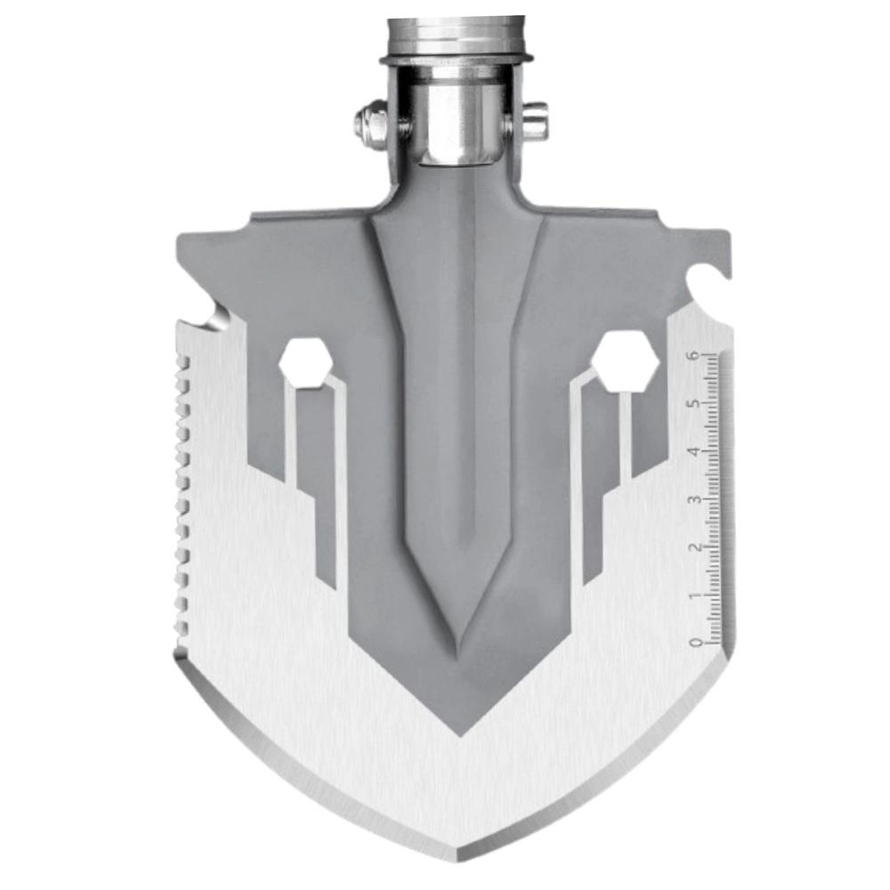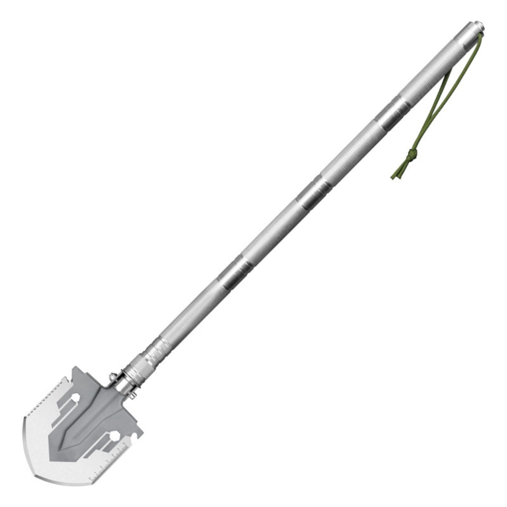 Skládací vojenská lopatka je vyrobena z vysokojakostní oceli a její modulární rukojeť z odolné slitiny hliníku zajišťuje komfortní úchop a může také sloužit jako pálka pro sebeobranu. Lopatka se skládá ze tří segmentů po cca 17 cm, takže při složení zabírá velmi málo místa – jen 25 cm na délku. Po rozložení dosahuje délky až 68 cm, což zajišťuje pohodlnou a ergonomickou práci.