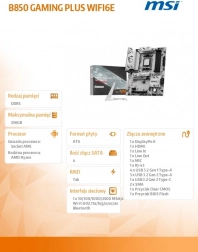 Základní deska B850 Gaming Plus s modulem WiFi6E je navržena pro hráče, kteří hledají širokou konektivitu a pokročilé Wi-Fi řešení pro komplexní herní zážitek. Podporuje procesory AMD Ryzen a nabízí moderní funkce pro maximální výkon.
