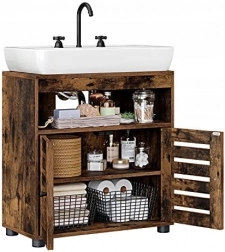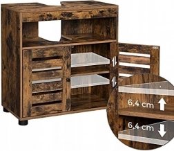 Vytvořte estetický a funkční prostor ve vaší koupelně s touto rustikální skříňkou pod umyvadlo. Její kompaktní, ale prostorný design pomáhá organizovat ručníky, kosmetiku a hygienické produkty, zatímco zároveň zachovává elegantní vzhled. Vyrobeno z odolné dřevotřísky v trendovém rustikálním hnědém provedení, dodává každé místnosti teplo a charakter.