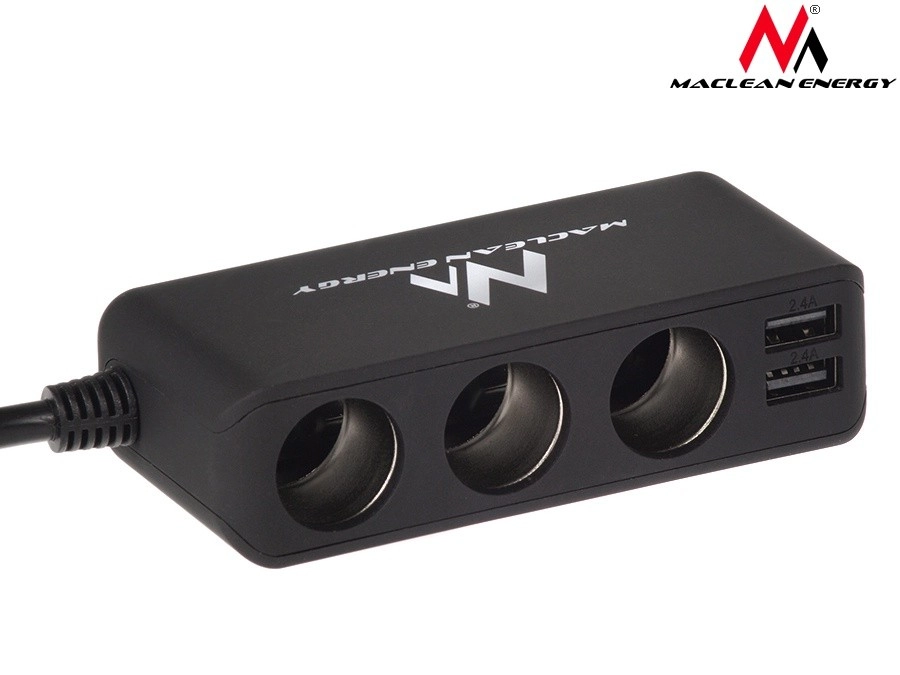 Praktická rozdvojka od značky Maclean je ideálním řešením pro všechny, kdo potřebují napájet několik zařízení během jízdy. Elegantní design a gumový povrch v černé barvě se hodí do každého interiéru vozu. Nabízí 3 zásuvky zapalovače a 2 USB porty s celkovým výstupem 4.8A.