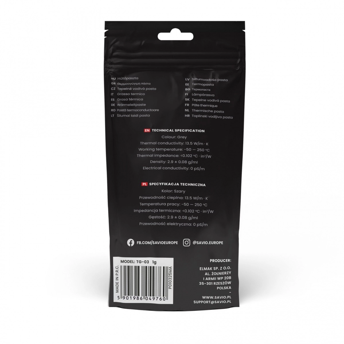 Savio TG-03 je k dispozici v baleních o hmotnosti 1g, 2g a 4g s ochranným balením proti vysychání.