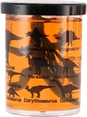 Každý kelímek skrývá malé dinosaury a potisk s jejich siluetami a názvy – zábava i učení v jednom.