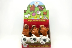 Po stisku bříška zvířátko vydá autentický zvuk – děti snadno poznají, jak mňouká kočka, štěká pes nebo řehtá kůň.