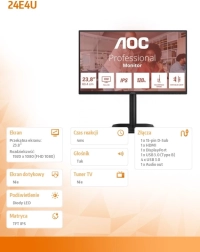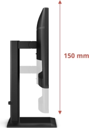 Ergonomický design umožňuje nastavení výšky až o 150 mm, naklonění v rozmezí -5° až +23°, otočení o ±175° a funkci pivot pro otočení obrazovky o 90°. Antireflexní povrch a redukce modrého světla zajišťují pohodlné dlouhodobé používání.