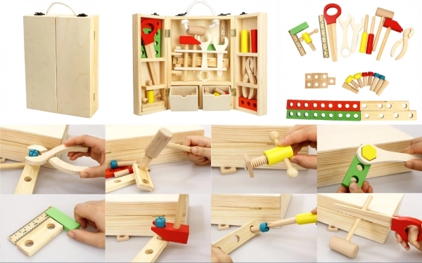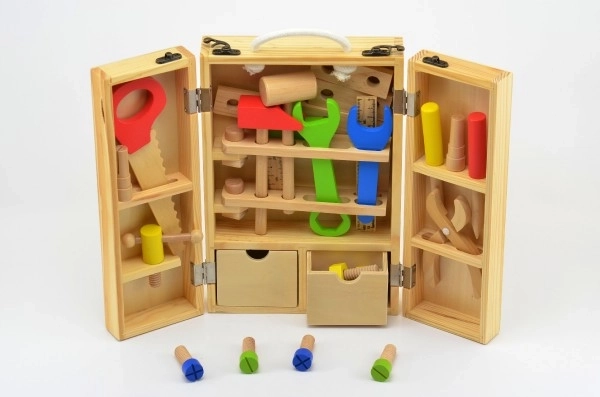 Objevte kreativní svět s touto dřevěnou sadou nářadí. Ideální pro děti, které milují objevovat a tvořit.