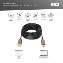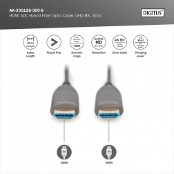 Aktivní hybridní kabel HDMI AOC je ideální pro domácí využití, konferenční místnosti a budovy. Díky malému průměru a nízké hmotnosti je snadný k instalaci a přenáší signál s nulovým zpožděním.