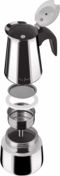 Tento kávovar je navržen pro tradiční přípravu italské kávy a je vyroben z nerezové oceli o vysoké kvalitě (18/10).