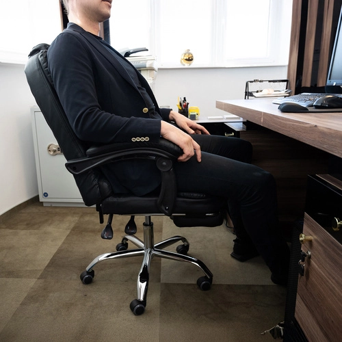 Tato kancelářská židle značky Malatec nabízí nejen pohodlné otočení, ale také vysouvací podnožku, která zajišťuje maximální relaxaci. Díky ergonomickému designu výrazně zlepší cirkulaci krve a sníží zatížení dolní části zad.