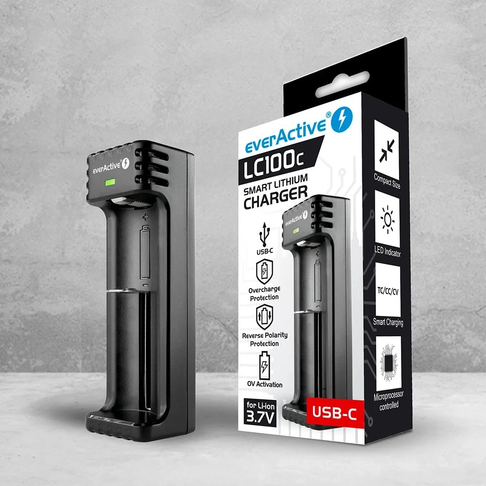Nabíječka EverActive LC100C je spolehlivé a jednoduché zařízení pro nabíjení jednoho akumulátoru. Je vybavena mikroprocesorem pro řízení procesu nabíjení a nabízí vysoký nabíjecí proud až 1000 mA.
