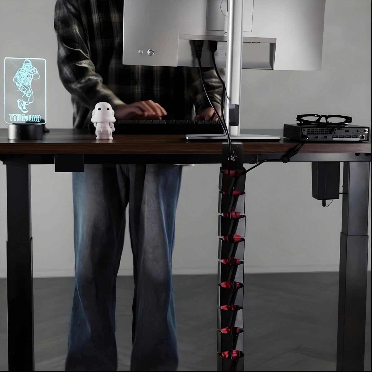 Černé segmenty s červenými klouby perfektně zapadají do herního stylu a zdůrazňují charakter vašeho pracoviště. Díky délce 1345 mm je ideální i na větší stoly, a pokud je třeba, můžete délku zkrátit odstraněním jednotlivých modulů. Tento organizer nejen zlepšuje vzhled vašeho setupu, ale také usnadňuje správu kabelů, čímž snižuje riziko jejich poškození. Je to malý detail, který dělá velký rozdíl, zvláště pokud dbáte na pořádek a styl.