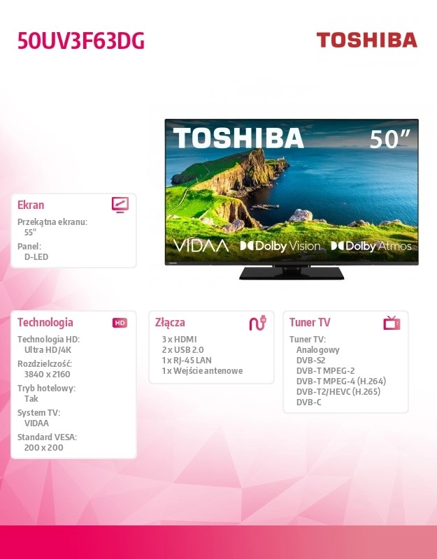 Velká úhlopříčka, tenké rámečky a čisté detaily – tento 50" LED televizor přináší pohlcující zážitek z domácí zábavy. Je navržen pro každodenní sledování s důrazem na kvalitu obrazu a úsporný provoz.