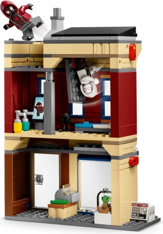 Tato detailní městská scéna se skládá ze tří propojitelných budov: bytu Milese Moralese nad klenotnictvím, věže Oscorp a bytu Venoma nad potravinami. Každý modul ukrývá tematické vybavení a doplňky, které podněcují kreativní vyprávění příběhů, a průhledné prvky umožní postavám dynamické pózy jako přímo z komiksu.