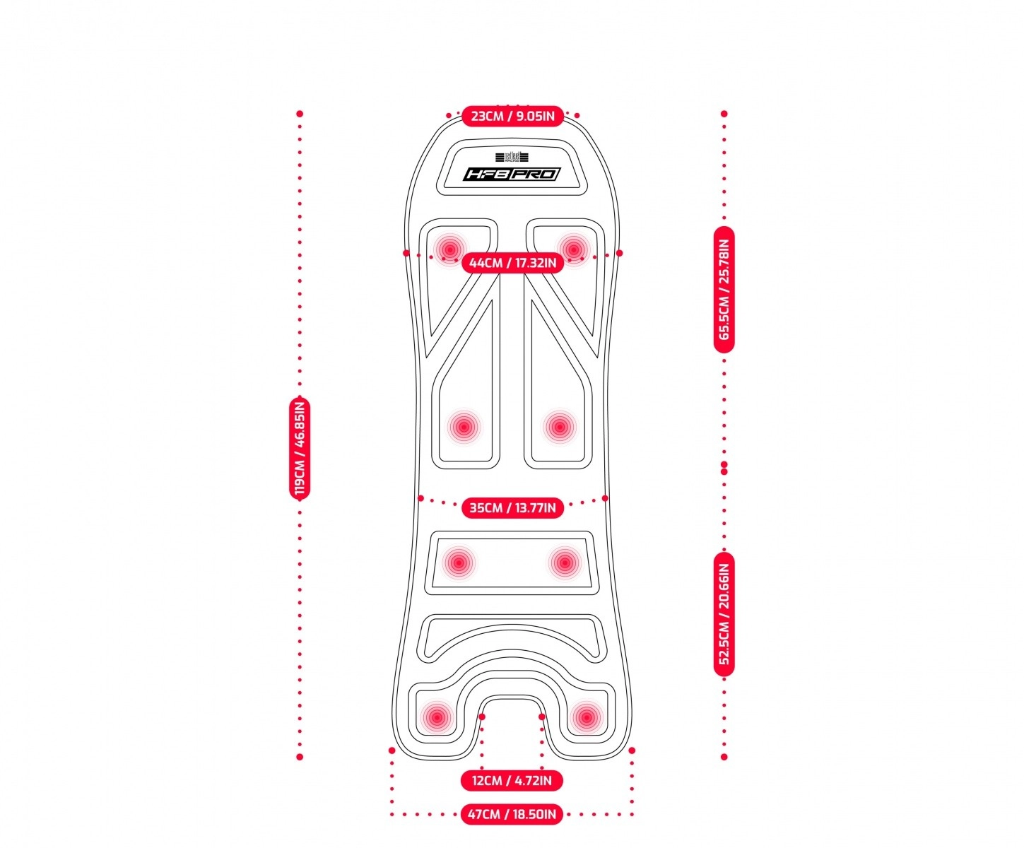 Vychutnejte si každý závod a let s osmi individálně konfigurovatelnými motory, které jsou kompatibilní s hlavními závodními a leteckými kokpity. Podložka HF8 Pro transformuje vaše sedadlo na zcela pohlcující simulátor.