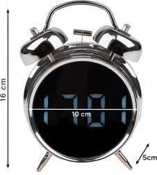 Digitální budík Izoxis Retro je ideální pro každého, kdo ocení funkčnost a stylové retro provedení. Jeho kovové a pevné zvonky zajišťují hlasité probuzení bez zaspání. Bezhlučný mechanismus chrání před nepříjemným tikáním a umožňuje klidný spánek před ranním alarmem. Hlasové ovládání aktivuje displej pomocí tlesknutí nebo jiného zvuku, což zaručuje praktické a snadné použití.