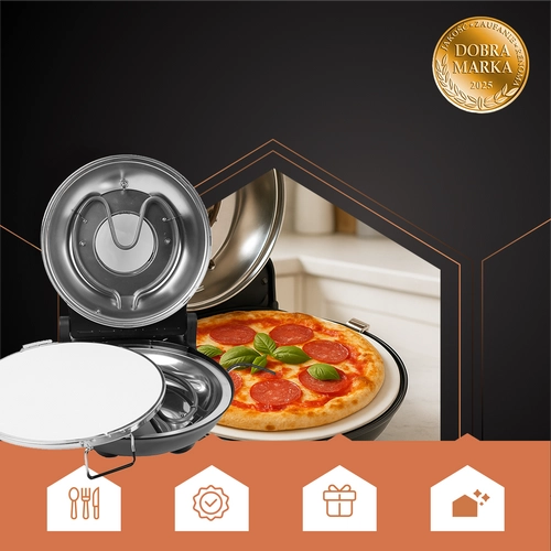 Elektrická pec na pizzu značky Ruhhy umožňuje pečení pizzy při teplotách až 450°C podobně jako v italské trattorii. Vybavená keramickým kamenem, termometrem a průhlednou poklicí pro maximální kontrolu nad přípravou chutné pizzy.