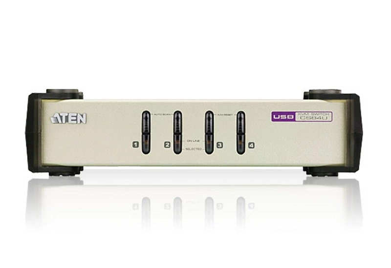 Přepínač ATEN CS84U umožňuje pohodlný přístup ke čtyřem počítačům z jedné konzole KVM přes USB a VGA rozhraní. Díky technologii Video DynaSync™ optimalizuje rozlišení a poskytuje stabilní zobrazení.