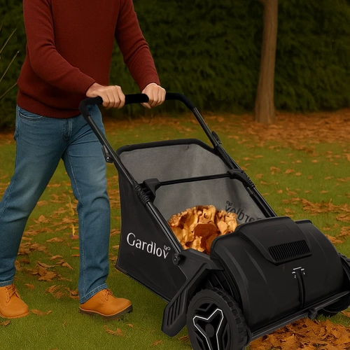 Ruční zametač GARDLOV je spolehlivé a ekologické řešení pro rychlý úklid zahrady bez kabelů, baterií a paliva. Tichý provoz a bezúdržbový mechanismus z něj dělají ideální nástroj pro každodenní použití během celé sezóny. Obrotový kartáč účinně shromažďuje listí a posekanou trávu přímo do velkého koše o objemu 100 l.