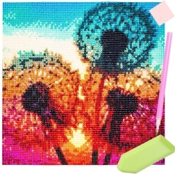 Diamantová mozaika je ideální volbou pro každého, kdo hledá klidné a zároveň naplňující hobby. Postupně umísťujete barevné kamínky na předtištěnou, samolepicí mřížku podle symbolů a vzniká tak nádherný třpytivý obraz s motivem pampelišek. Hotové dílo můžete zarámovat nebo pověsit tak, jak je.