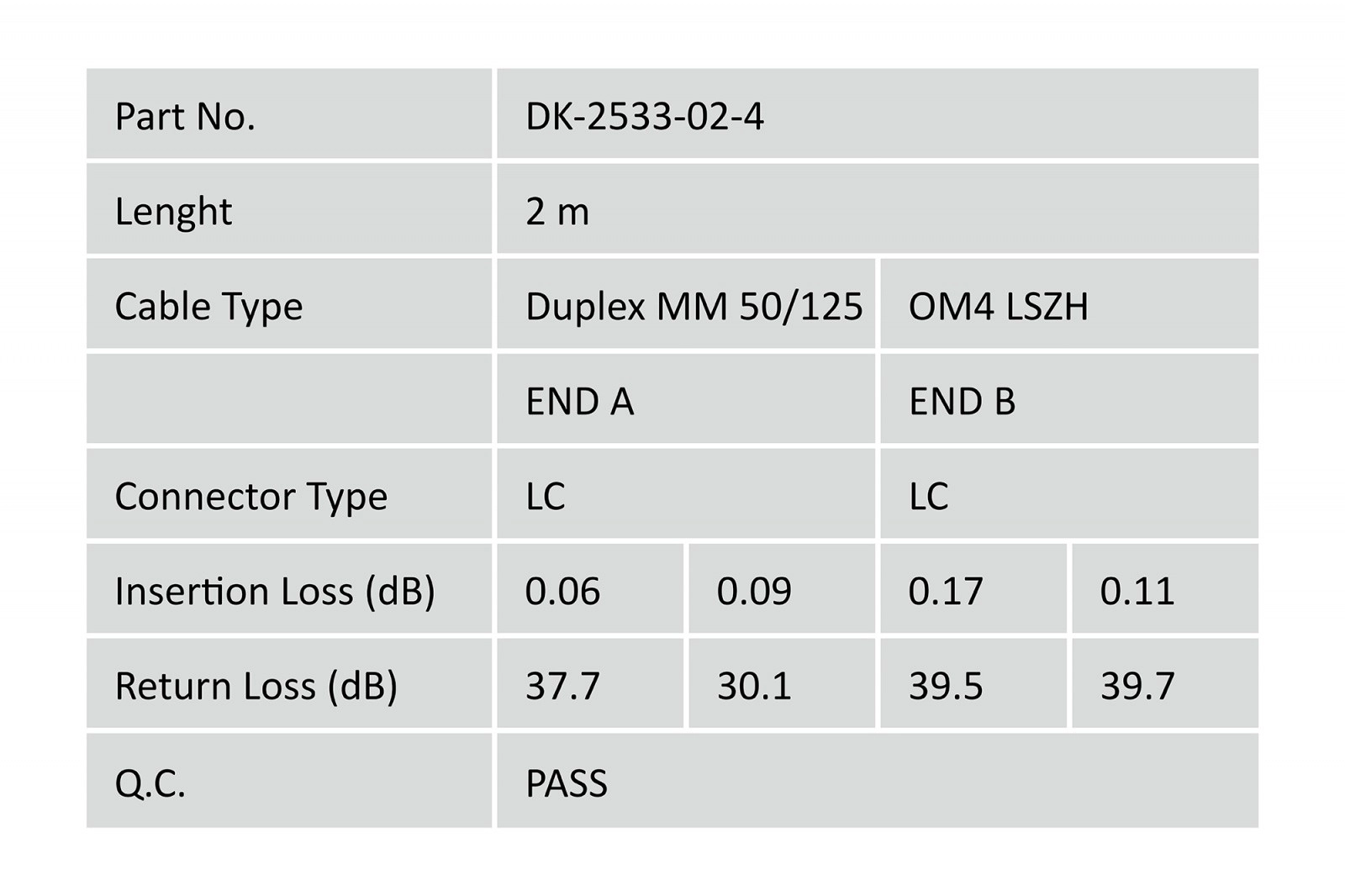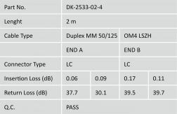 Konektory LC s keramickými ferulemi zaručují stabilní spoj s nízkým útlumem. Plášť LSOH minimalizuje kouřivost a neobsahuje halogeny, což je vhodné pro instalace v interiérech s důrazem na bezpečnost. Kabel je dodáván samostatně balený s protokolem měření pro jistotu shody a kvality.