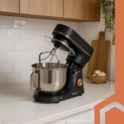 Proměňte každodenní vaření v radost. Robot RUHHY kombinuje silný motor, ohřívanou mísu (25–45 °C) a planetární míchání pro perfektně zpracovaná těsta – od křehkých krémů až po hutné chlebové a pizzové. Intuitivní dotykový displej a ovládací enkodér umožní přesně nastavit čas, rychlost i teplotu.