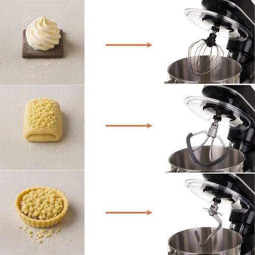 V balení najdete 3 nástavce (háček, metlu, šlehací balónovou metlu) pro širokou škálu úkolů – od těžkých kynutých těst po nadýchané krémy a bílkové pěny. Antiskluzové nožky zajišťují stabilitu, vybrané díly lze mýt v myčce a QR kód s recepty vás inspiruje k novým nápadům v kuchyni.