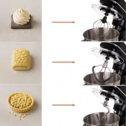 - Hák na těsto, metla, šlehací balónová metla, mlýnek na maso, nástavce na klobásy, formování sušenek, plastové nástavce na těstoviny, sada na krájení/strouhání, kryt mísy, stěrka, separátor vajec, cukrářský rukáv s 24 koncovkami v organizéru