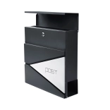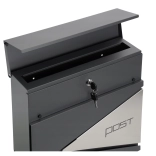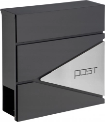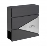 Tato antracitová schránka na dopisy se vyznačuje čistým designem ozvláštněným geometrickými průřezy a minimalistickým nápisem „POST“. Díky odolným materiálům a práškovému lakování je ideální pro dlouhodobé venkovní použití.