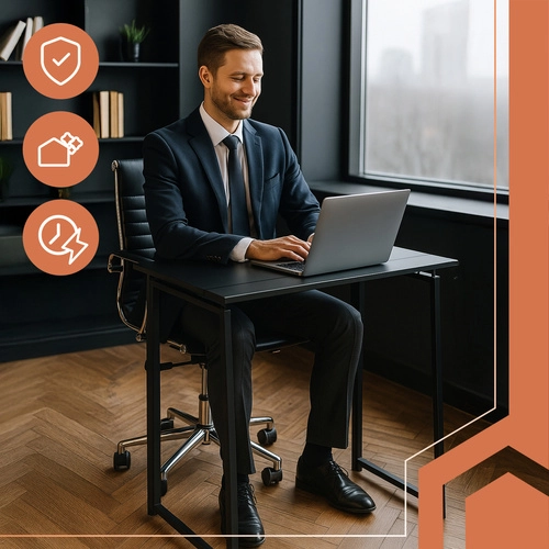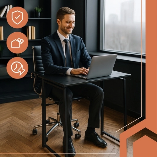 Minimalistický industriální design s pevnou kovovou konstrukcí poskytuje jistotu při práci s notebookem i dokumenty.
